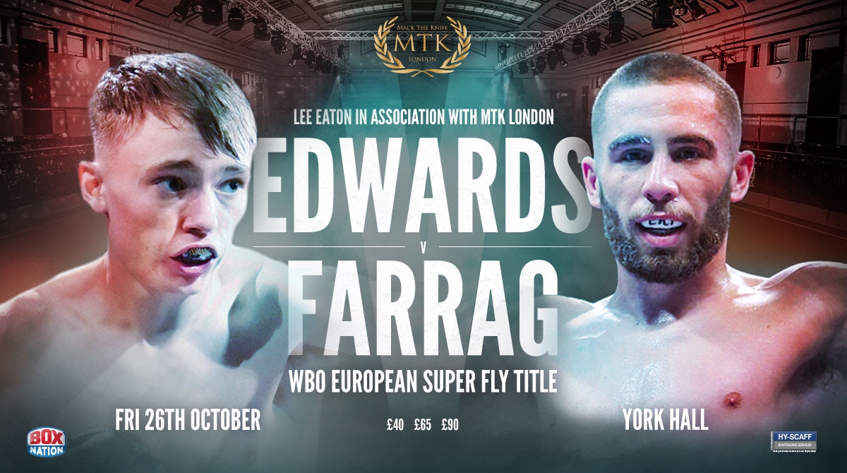 Sunny Edwards and Ryan Farrag will contest the WBO European super-flyweight title on a stacked MTK Global show at York Hall on October 26 – live on BoxNation.